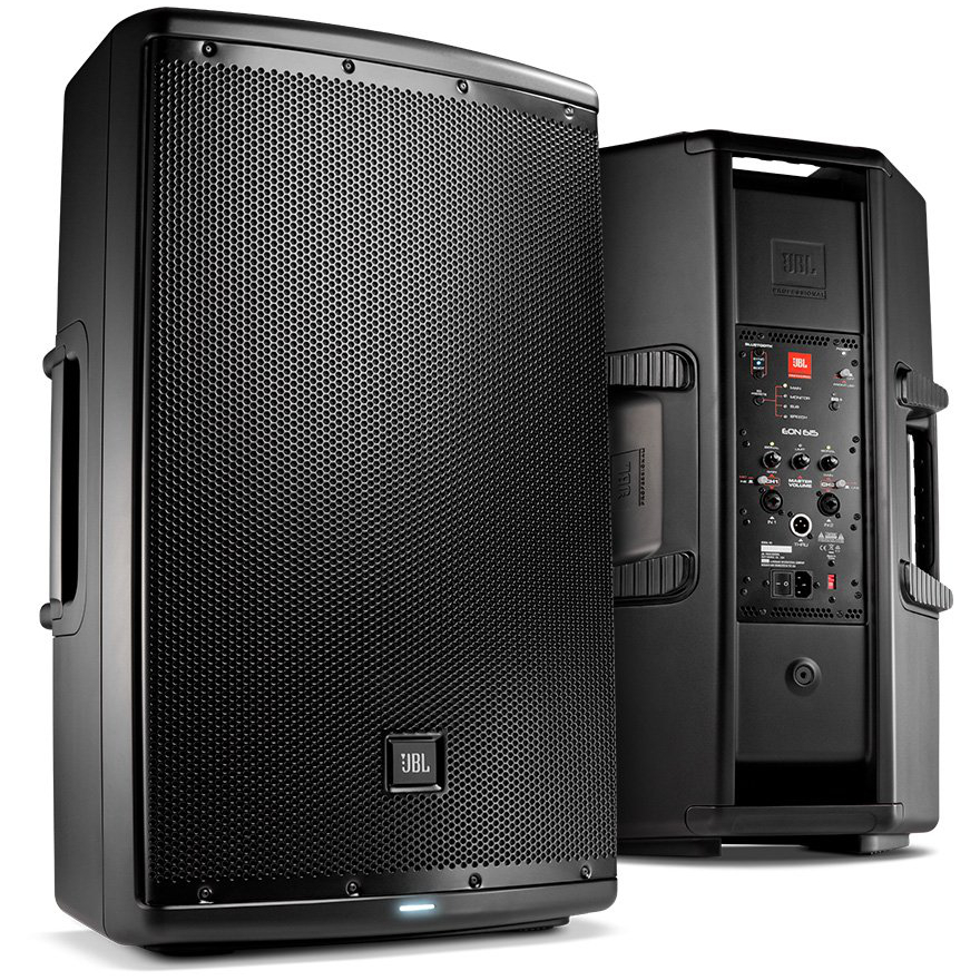JBL EON 615, Aktives PA Top, 1000W, 15" Woofer, 1" Kompressionstreiber, Class D Entstufen, Zwei umschaltbare Mic/Line Eingänge, Vier EQ Presets, Parametrische Klangregelung via Bluetooth, Hochständerflansch, M10 Flugpunkte