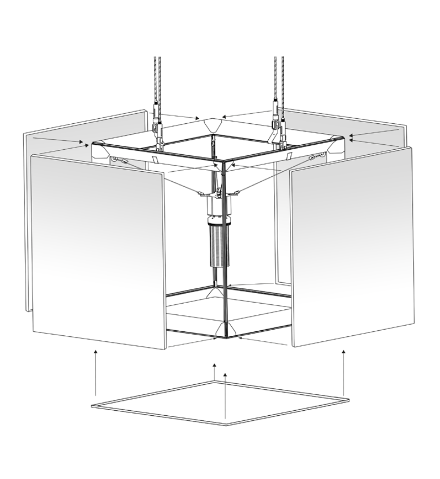 1x Würfel Alu 1x1x1m Stoff zum selber branden inkl. Druck von 5 Stoffen (grafische Arbeiten werden vom Kunden geliefert oder zusätzlich verrechnet). Ob Ihr Firmenlogo oder etwas, das die Atmosphäre aufhellt, die Wahl liegt bei Ihnen. Mit einem LED-Licht, das Ihrem Design extra Wirkung verleiht (die Beleuchtung benötigt einen Stromanschluss). Sie können ihn an der Decke aufhängen oder auf den Boden stellen (inkl. Abhängeset), je nachdem, was am besten zu Ihrem Event passt.