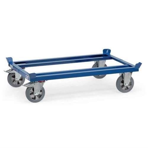 Paletten-Fahrgestell aus Winkelstahl für Europaletten, Ladefläche LxB 1200x800 mm, Ladehöhe 282 mm, 4 Fangecken, 4 Lenkrollen mit spurlosen Elastic-Vollgummi-Räder, Rad DxB 200x80 mm, Kugellager, geringer Rollwiderstand, keine Fahrgeräusche, 2 Lenkrollen mit Feststeller,