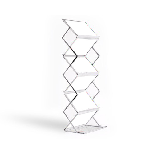 Faltbarer Prospektständer mit je Seite 3 Ablageflächen im Format A3