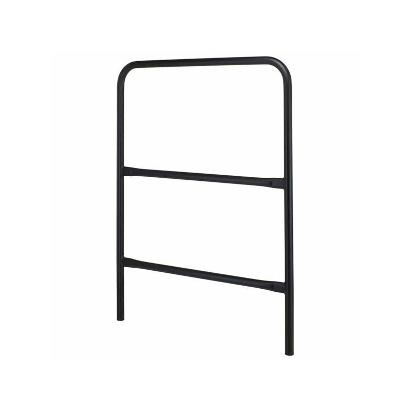 zusätzliche Querstrebe in ca. 16 cm Höhe, verhindert z.B. das Herabrollen niedriger Cases; inkl. zweier Befestigungshalter; Material: Aluminium; Farbe: schwarz pulverbeschichtet; Rohrdurchmesser: 35 mm; Geländerhöhe: 110 cm; Abmessungen: 868 x 1200 x 35 mm; Gewicht: 2,8 kg