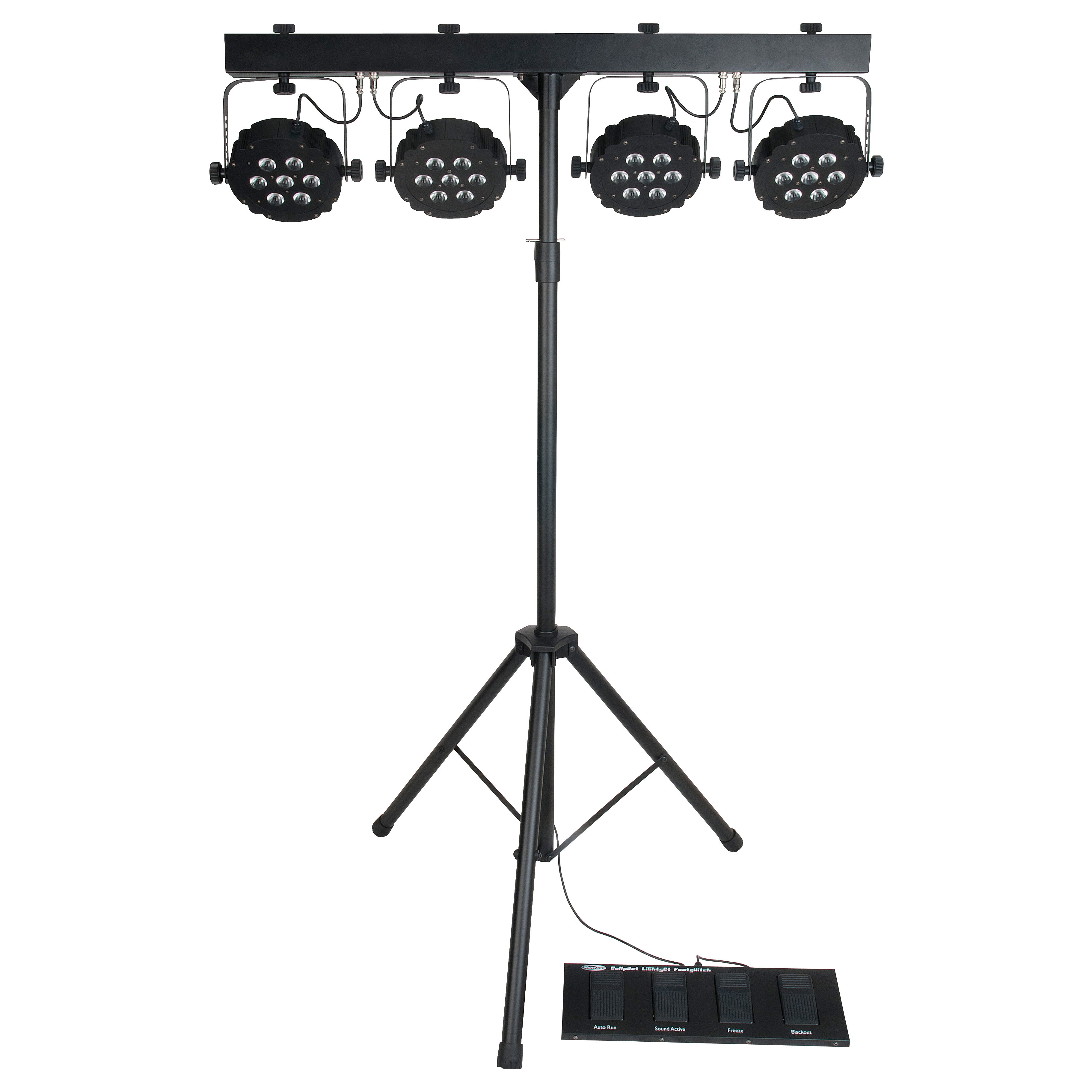 - 4 leistungsstarke LED-Spots mit 7 x 3-in-1 RGB-LEDs