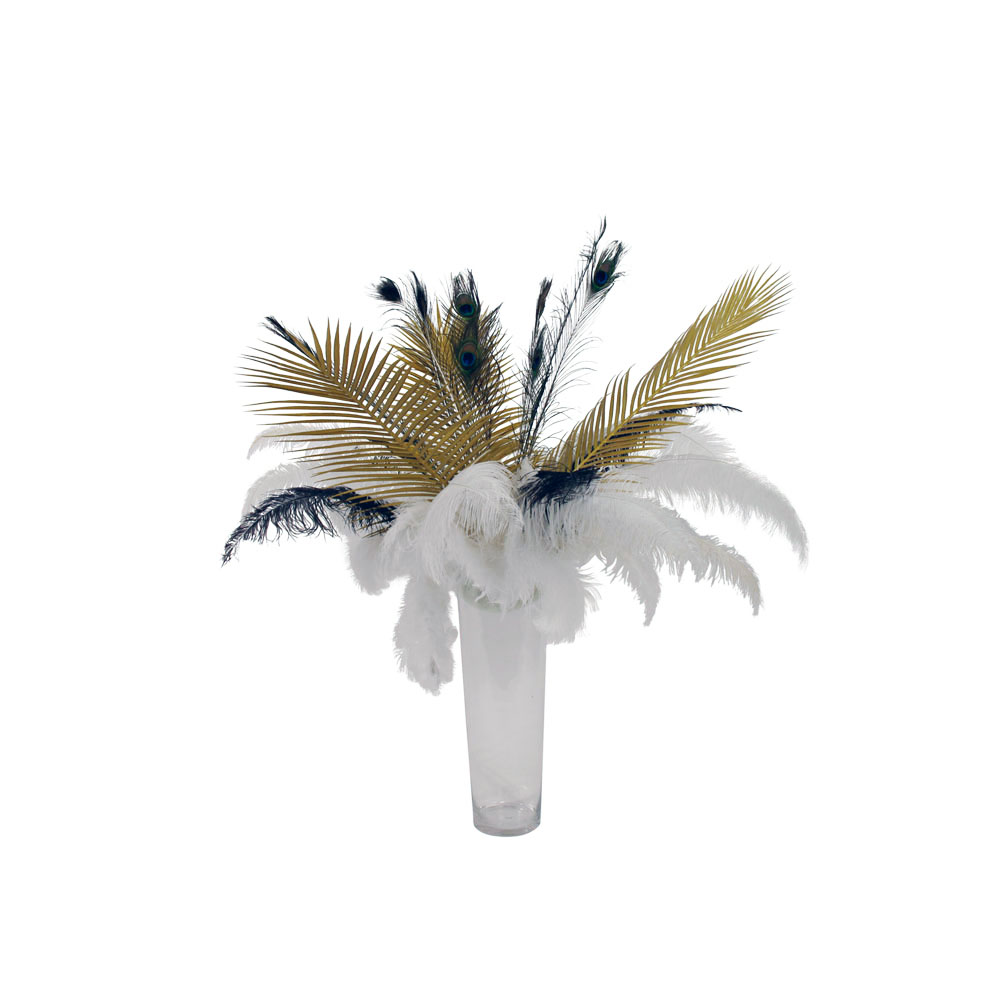 Schönes Bouquet aus Straussenfedern, goldenen Palmwedel und Federboa.