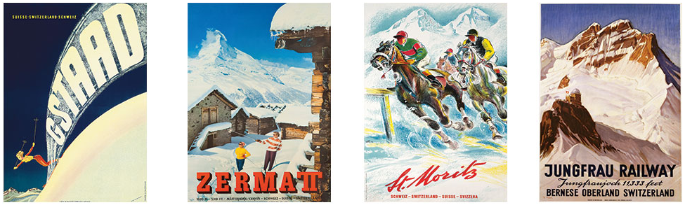 Diese auf alt gemachten Plakate in Bilderrahmen sind ein super Dekoobjekt für an Wände bei Schweiz Deko.