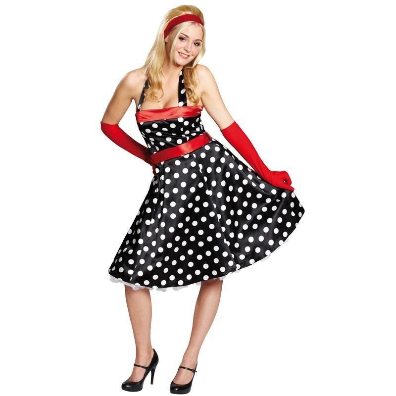 Weiss-schwarzes Neckholder Kleid (50er Jahre Stil, Rockabilly)
