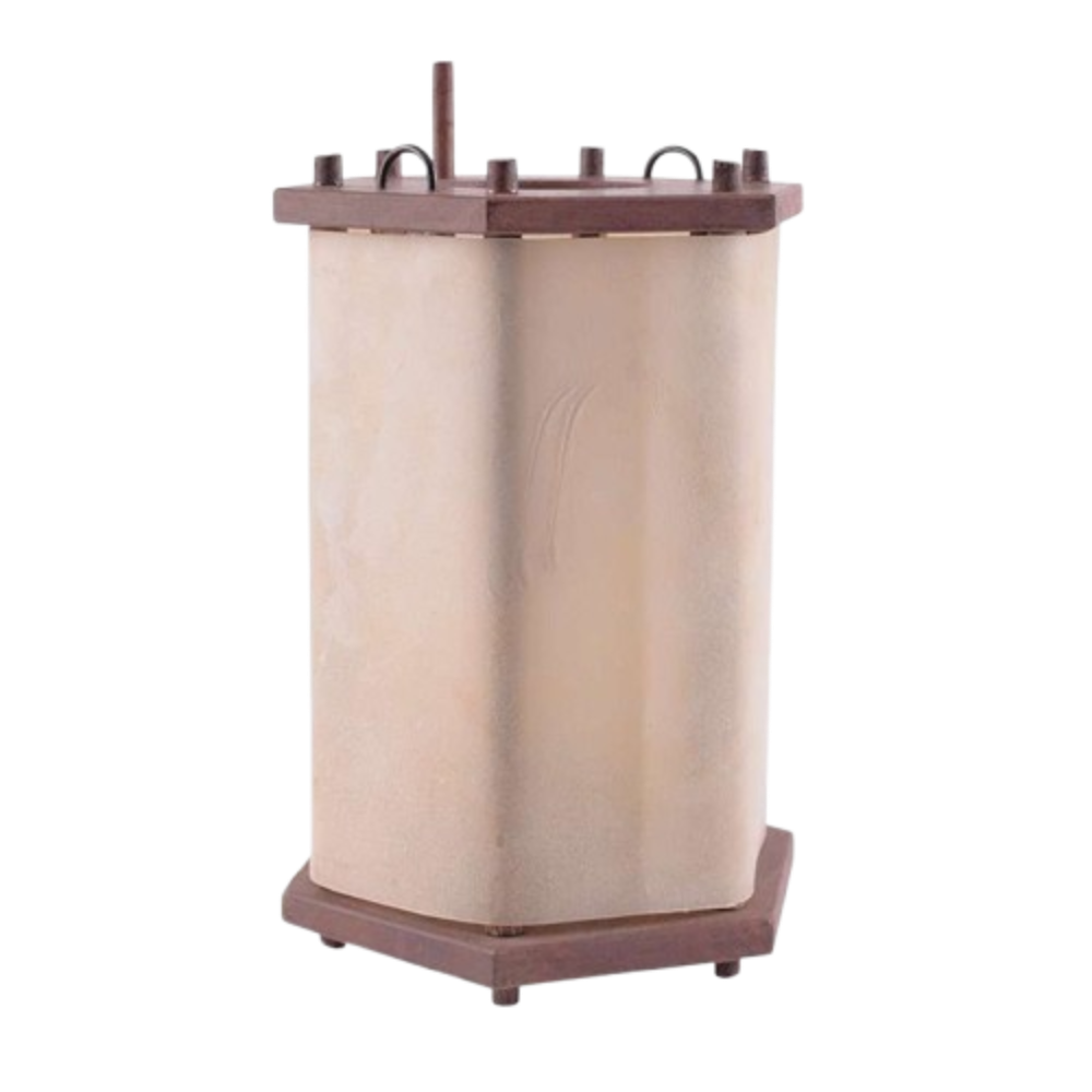 Dieser sehr schöne und authentische Nachbau einer mittelalterlichen Holzlampe ist aus echter Rohhaut (Pergament), Holz und Stahl gefertigt und verfügt über einen Tragebügel aus Stahl. Die Laterne ist mit einer Halterung für Spitzkerzen ausgestattet (Kerze nicht im Lieferumfang enthalten). Die Öffnung oben misst 6,5 cm.